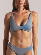 Triangle Bikini Set with Adjustable Straps - Denim Blue
