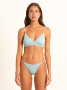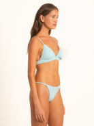 Step into summer with OCEAN MYSTERY’s light blue triangle bikini set. Crafted from textured fabric, this set features a flattering triangle bikini top with adjustable straps and removable padding, paired with sleek fixed-side bikini bottoms for a comfortable, secure fit. Designed to balance style and ease, it’s the perfect swimwear for sun-soaked days by the beach or pool.
